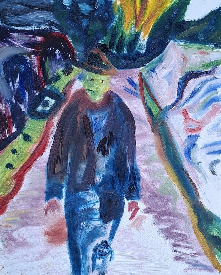 Tijdens het Expressionisme staat de persoonlijke beleving centraal. Niet langer gaat het om de werkelijkheid, de emotie staat centraal. Een menselijk figuur kan een groen hoofd hebben omdat hij stijf staat van woede. En dat landschap waar de figuur doorheen loopt, dat bestaat waarschijnlijk niet. Het ondersteunt de boodschap dat daar een slechte man loopt.